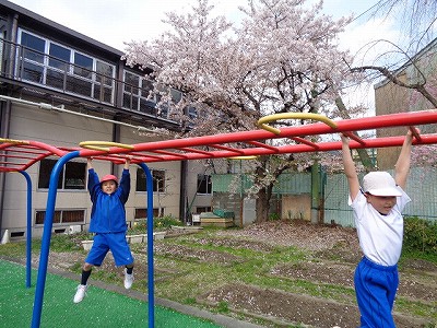 体育は、雲梯やジャングルジムから体を動かし始めました。