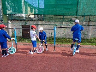 最後は、徒競走や一輪車の練習もするなど、色々な運動に取り組みました。