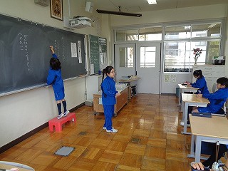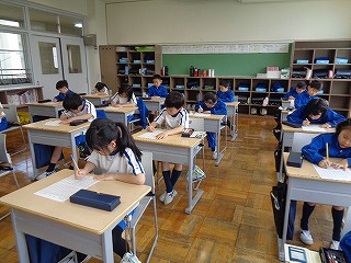 月曜日の「朝根っこタイム」は計算です。集中して黙々と取り組んでいます。