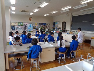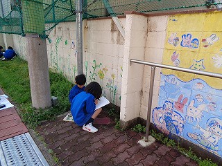 理科室でのすわり方の確認をしてから、今日も自然観察へ。