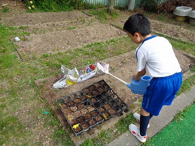 放課後には、日直さんが水やりもしました。
