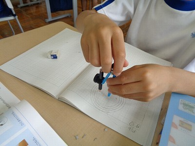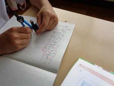 今日は、まだ慣れない手つきでしたが、コンパスを書く方向に傾けながら、最後まできれいに書けるように、いくつも円を書きました。