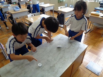 こまに書いた点が、回ると、円の形になることを確認しました。