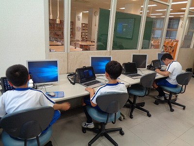 PCルームでのローマ字打ちの練習では、ログイン操作がスムーズになり、終了までいくつかのプログラムで練習しました。