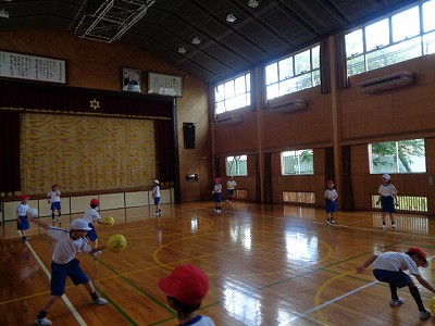 体育は、バレーのサーブの練習を続けています。体育館でペアで練習していると、相手まで届くまっすぐなナイスサーブが多くなりました。