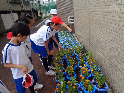 アジサイの咲く道を通り、自分たちの鉢の花が咲いているのを見ながら、