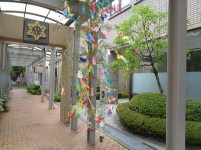 教室への帰りすがら、七夕の笹が風にゆられていました。