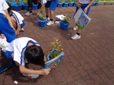 草丈を測って記録しました。マリーゴールドの花がしおれて、種もできていました。