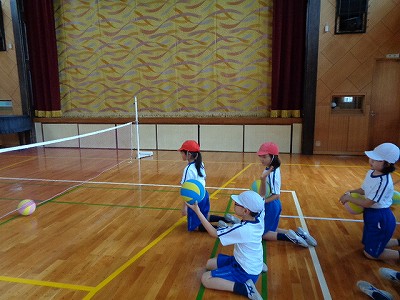 今日は、体育でパラリンピックの競技である「シッティング・バレー」に挑戦しました。
