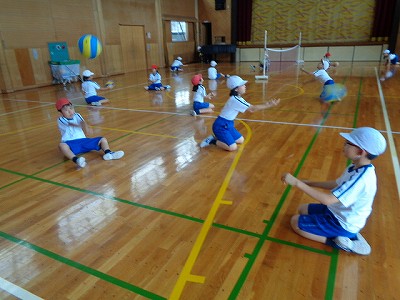 床に座ったままバレーをするので、サーブの練習をしても、はじめのうちはなかなか思うようにボールが飛んでくれません。