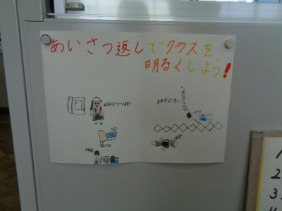 朝の会では、あいさつ係が作ったポスターも、今日から掲示されました。