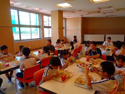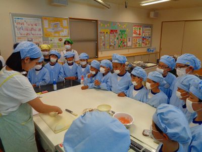 栄養教諭の先生や、栄養士実習の学生さん4人、担任の私・・・6人の指導体制です!