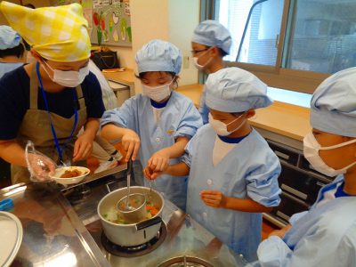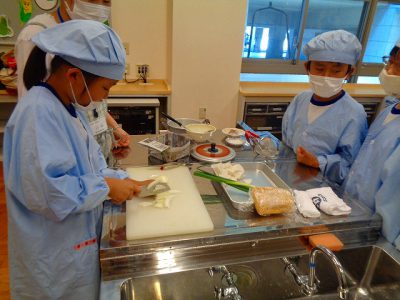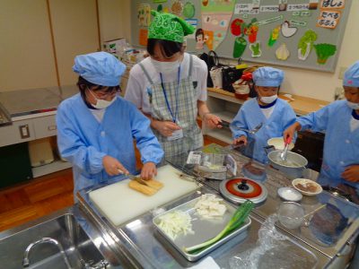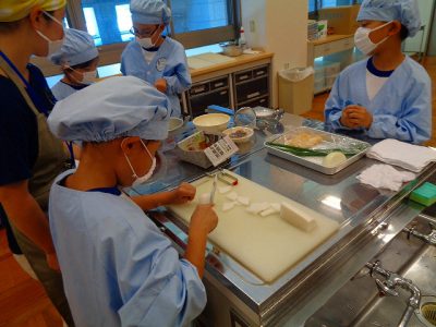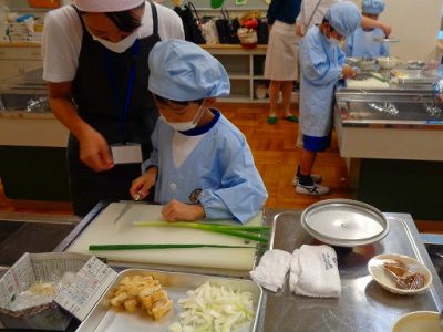 途中実習生の方にいろいろ教えてもらいながら、無事においしい味噌汁ができました。