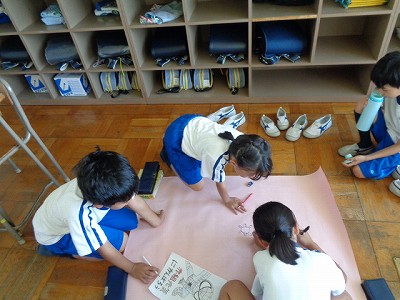 休み時間は、応援ポスターの制作を引き続き、メンバーで協力して頑張っています。