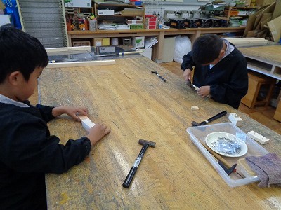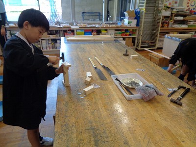 図工は「ギコギコトントン」の作品づくりの続きです。
