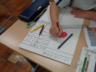社会科では、お店見学のまとめとして「新聞作り」をしています。