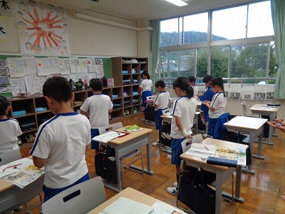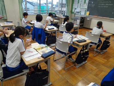 理科は「かげの動き」について、ノートにまとめを書いたり、方位磁針の正しい使い方や気をつけることについて確認しながら、学習しました。