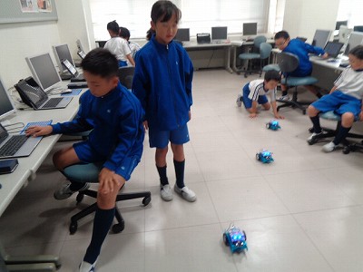 今日は、3年生が以前よりやってみたいと興味をもっていたロボットを動かすプログラミングをしました。ロボットといっても、車に近いものですが、動かし方をまずは確認。