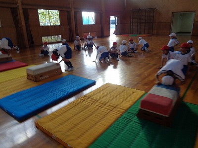 体育の授業は、いいお天気だったので、とび箱運動からスタート。