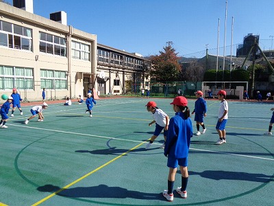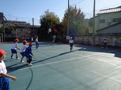 中間休みは、みんな遊びのドッジボールで元気よく体を動かせていました。