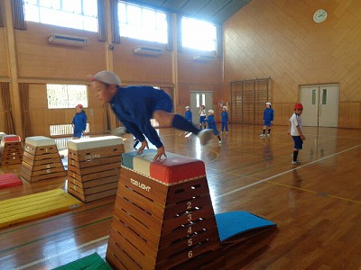 体育科は先週まで体育館が使えずに、お休みしていた「跳び箱運動」です。