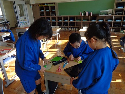 ↓ 【かざり係】によるクリスマス掲示の作成。