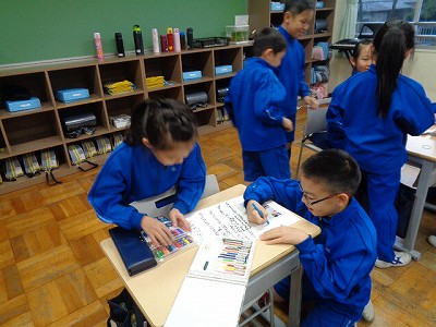 新しい係のメンバーで、係ポスターを仕上げていました。