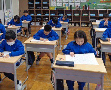 今日で、漢字大会も5回目となりました。3年生の漢字の総仕上げとなる漢字大会ということもあって、毎回、字の書き方からがんばりが感じられます。
