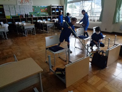 ほうき担当の人・ぞうきん担当の人が、大いそがし。ほこりの多さにびっくりし、ぞうきんを洗うバケツの中の水のよごれにも、びっくりの掃除でした。