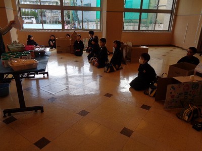体育館に集合して、新学級代表が号令をかけてくれました。聖歌を歌っている間、ステージ上には、4年生の礼拝係の姿がありました。3年生も、一年後には礼拝係を担当します。阿弥陀さまと、礼拝係のきれいにそろった動きを見ながら聖歌を歌いました。