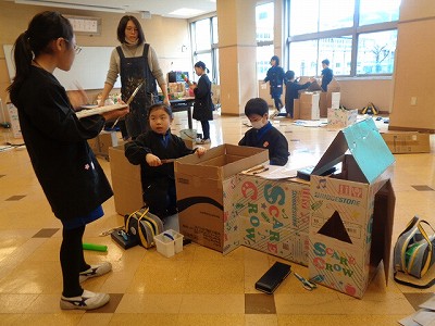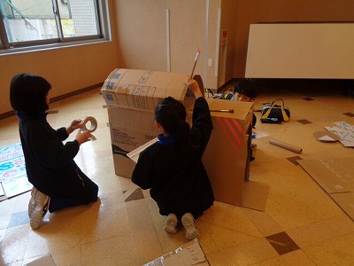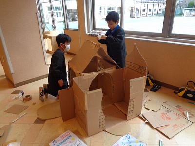 屋根の形、外側のデザインなどを工夫して、チームのメンバーで相談しながらテキパキと進めていました。