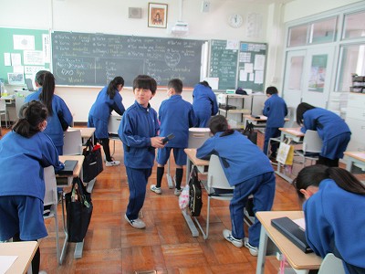 1時間目の学活で、3年生最後の席替え、その後、係活動を新たに決めました。