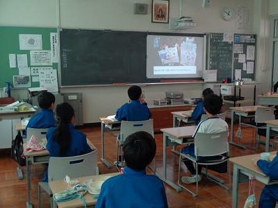 集まった服が届けられ、受け取った子ども達の笑顔を見てうれしい気持ちになりました。1時間目の月影の時間には、人間の欲張りな心をテーマにお話を聞き、考えた3年生。