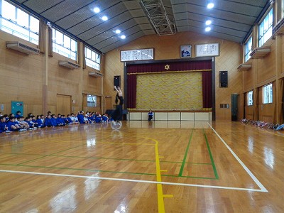 体育館で、スケートのショーのように音楽に合わせてパフォーマンスをされ、色々な技を見せて頂きました。