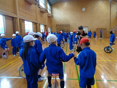 また、一輪車で技をするコツを教えてもらったり、実際に乗る練習もしました。