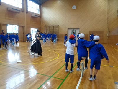 昼休みから、一輪車のパフォーマーの方が来校されました。