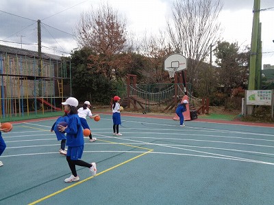 体育では、7周走をした後、ポートボールの練習を始めました。