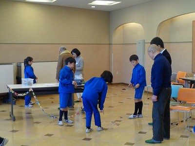 その後、4つのコーナーに分かれ、各コーナーで色々な昔遊びを教えて頂きました。