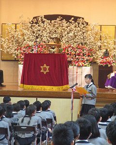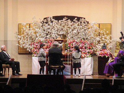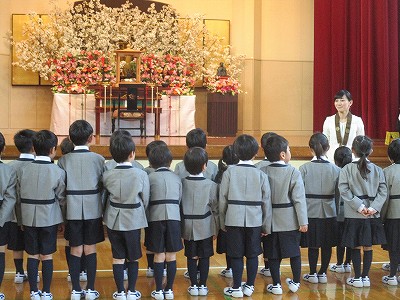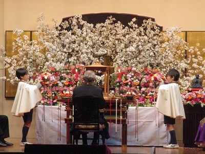 お二人のご誕生と、ピカピカの新1年生の入学をお祝いし、桜の花々でいっぱいの「花まつり」の入学式になりました。
