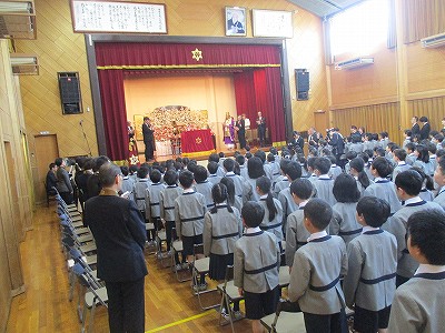児童会代表の6年生より「お祝いの言葉」の挨拶がありました。