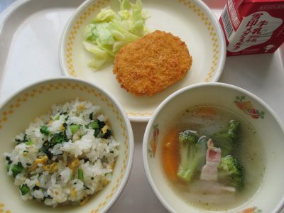 花菜の時期は終わりを迎えていますが、最後の春らしい給食になりました。