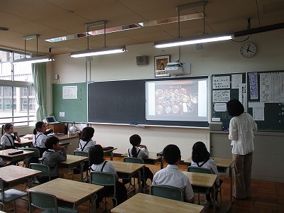 韓国出身の先生を招いて、今日は韓国の概要や文化(衣食住など)についてお話していただいたり、挨拶などの簡単な言葉を教えてもらったりしました。