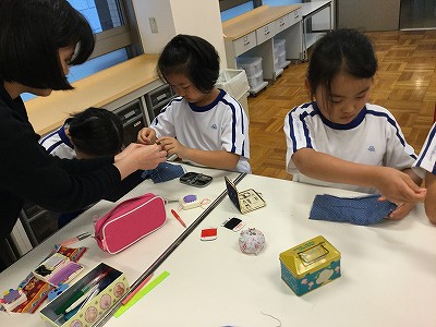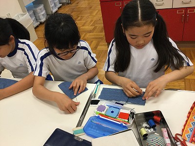 このあとはクラブ始めとして、“運針”に取り組みました。針を持つのは初めて…というメンバーも、