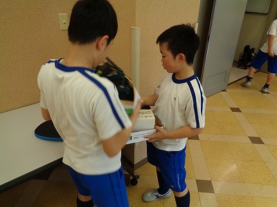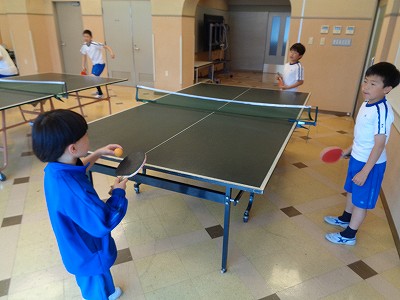 4年生は、ラケットの握り方から学び、ピンポン球を芯で捉えられるように考えながら励んでいました。