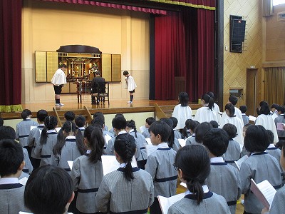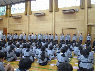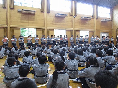 今日は、学年ごとの挨拶で、声のトーンを意識して、どの学年も上手にできました。