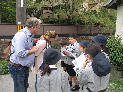 学校を出てすぐに出会えたので、みんなで喜んでいると、続いて、イギリスの方ともお話できました。