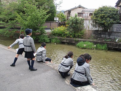 白川の流れを見ながら、ゆとりを感じていました。