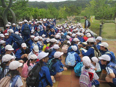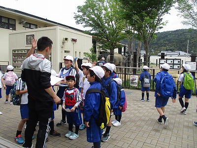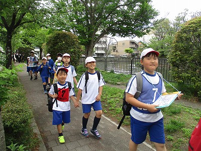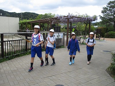 早朝に雨が降ったので、お天気が気になる今日のウキウキウォーキングでしたが、2校時終了後には、雲間に青空が見え、暑すぎない絶好の遠足日和になりました。