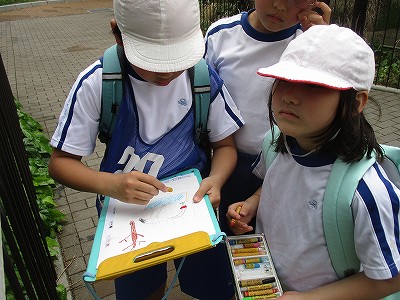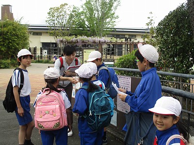 ウォークラリーのポイントでは、先生から質問やお話があったり、シールをもらいました。