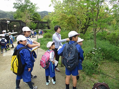 先生と一緒に、キリンやシマウマを間近で観察しました。